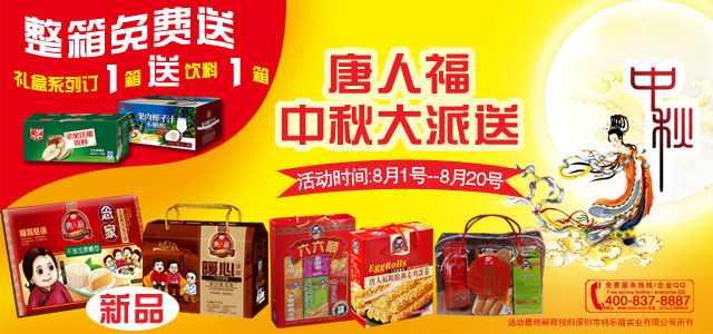 唐人福中秋大派送:無(wú)糖禮包系列一箱送一箱編輯:唐人福 發(fā)布時(shí)間:2014-08-02 14:14:56 瀏覽次數(shù):3555人次