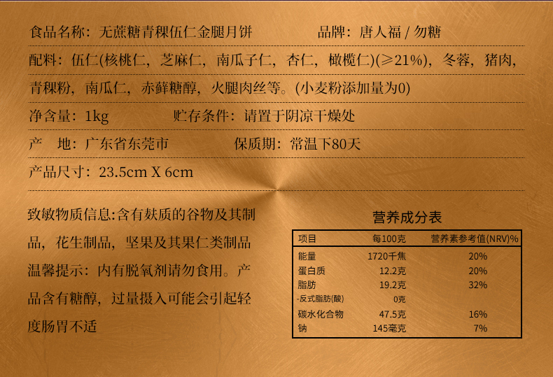 無(wú)蔗糖青稞五仁金腿月餅-勿糖大餅